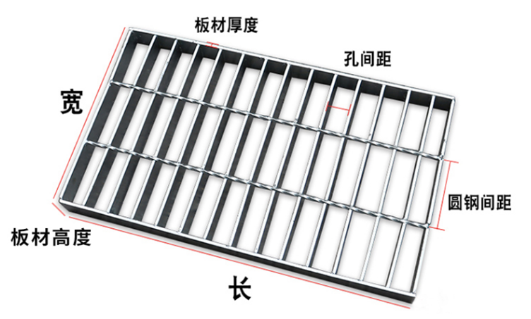 一个表示方法,钢格板由承载受力扁钢25mm高*厚度5mm,网格大小:纵条间距30mm横杆间距100mm